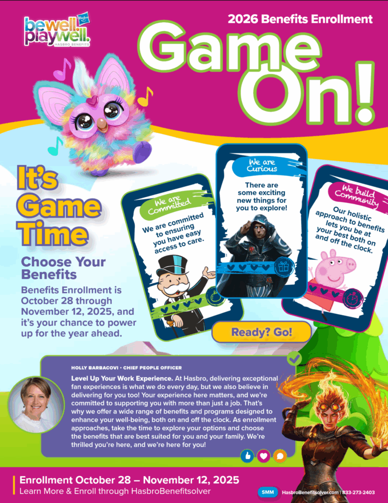 HasbroBenefitsolver is your easy-to-use enrollment site. For help enrolling, visit the HasbroBenefitsolver Center or call 833-273-2403. The HasbroBenefitsolver Team is available 10am – 6pm ET/7am – 3pm PT.